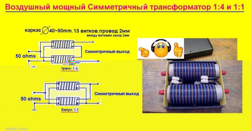 Далее трансформатор 4:1, симметрирующее устройство с согласованием