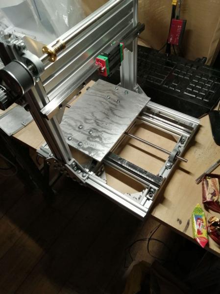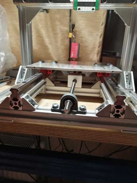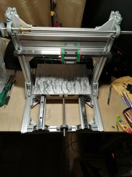 Нашел для себя отдушину и фундамент для будущих самоделок ;) Насмотревшись роликов на ютуб решил собрать станочек для гравировки печатных плат и разных поверхностей. Сначала хотел взять готовое решение вроде CNC3018 и ему подобных на алиэкспресс, но погуглив понял, что много проблем прежде всего из-за рамы и направляющих. Однако подкупала относительная простота конструкции и отсутствие фрезерных работ. По мотивам китайского изделия решил собрать немного усовершенствованный вариант с подвижным столом. В качестве направляющих использованы профильные рельсы HGR15 и каретки HGW15CC. Рельсы под столом установлены на дополнительный профиль для повышения жесткости рамы и устранения возможных резонансов.Закупался на али скрестив пальцы.Рельсы и каретки оказались нормальными,скользят без рывков, рельсы в местах качения шариков закалены. Винты трапеция с шагом 2мм/оборот.Решение временное и в дальнейшем будет замена на ШВП 1204.Ввиду достаточно небольшой площади обработки 200х180х50мм и отсутствия значительных нагрузок решил оставить по одной каретке на рельсу. При таком варианте площадь обработки получилась чуть больше, чем если бы было по 2 каретки на рельс.Стол,точнее основание будущего стола прикручено на болты с *головой*,материал столешницы дюраль 6мм.Не принципиально,т.к. сверху будет жертвенный стол *на расход*,на котором будут учтены выемки для этих болтов.На данный момент делаю ось Z.Ось Х сзади будет немного усилена на кручение 4 штуками уголков. По осям Х и У привод на винт запланирован через ремень ввиду ограниченного пространства размещения станка. В качестве шпинделя будет установлена высокоскоростная бесколлекторная бормашина на 150вт и диапазоном оборотов 1000-50000,сам аппарат будет приподнят на основание для размещения шагового двигателя для оси У.Конструкция станка из профиля с множеством стыков ,потому требовать от него сколь-нибудь высокой точности нет смысла.Да и юстировка рельсов при таком типе конструкции занятие весьма хлопотное.Но это все преодолеваемые трудности и следующая машина будет более взрослой.Немного фотографий процесса во вложении.Буду рад найти единомышленников,готовых поделиться опытом ;)