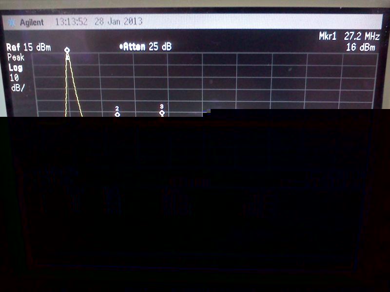 Вот ещё картинка со спектроанализатора, состав выходного сигнала радиостанции: