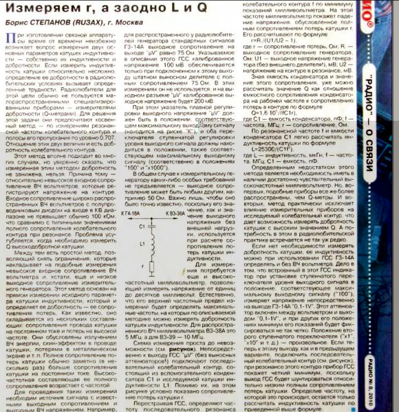 Здесь небольшое отличие от Степанова в том, что вместо 50-омного анализатора он использует высокоомный вольтметр и немного другую формулу для расчёта Rп. Но принцип тот же.