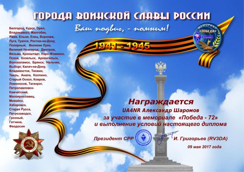 Сегодня Алексей RA4SD любезно прислал мне диплом Аврора 50, ох и нелегко он дался.... Корреспондентов, желающих провести связь с уже имеющимся у них квадратом -немного,в радиусе 1000 км, а именно столько я могу себе дальность позволить...Пришлось и связей 5-7 SSB добавить, и связи за 1979-1981гг...(там ещё проблема с квадратами, они по другому в то время были...) А хотелось чисто телеграфный,но всё равно доволен... 73 УКВ-истам !