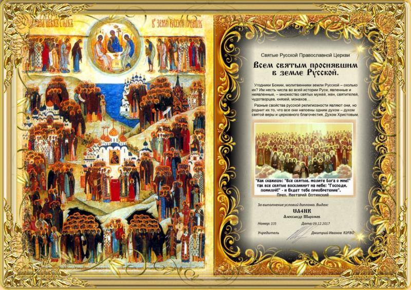 получить диплом:"Всем святым,просиявшим