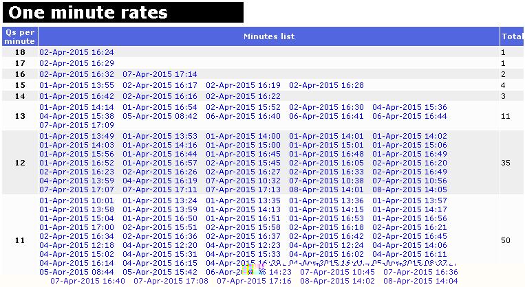 Лучшие периоды по времени по количеству QSO за 10 минут, 20 минут и т.д.
