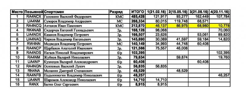 ИТОГИ Кубка по радиосвязи на УКВ Кировской области 2016 года.