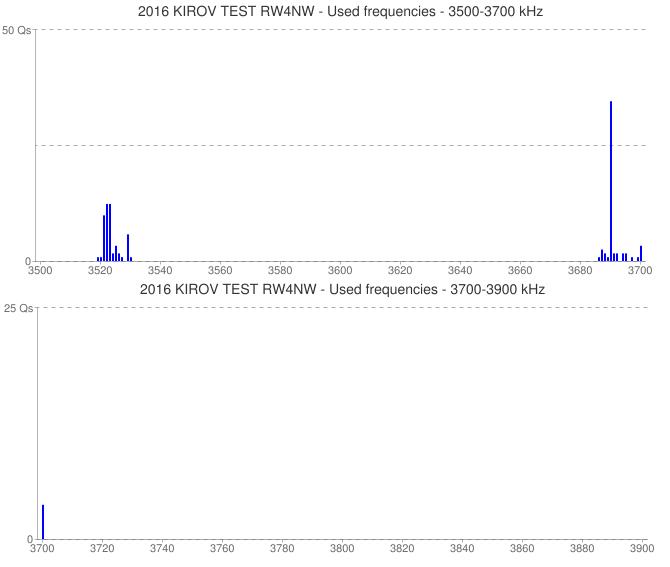 Из графика видно, что основное количество связей проведено в полосе частот: 3520-3530 кГц телеграфом и 3685-3705 кГц телефоном. Любопытная получилась статистика.