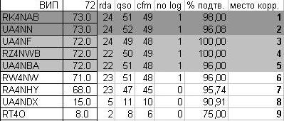 9.1.1. Окончательный результат получается суммированием очков за радиосвязи и районы.