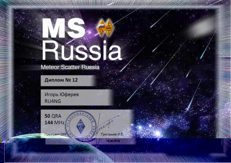 We congratulate Valery UA4NBA on performance of conditions of RDA-2500HR