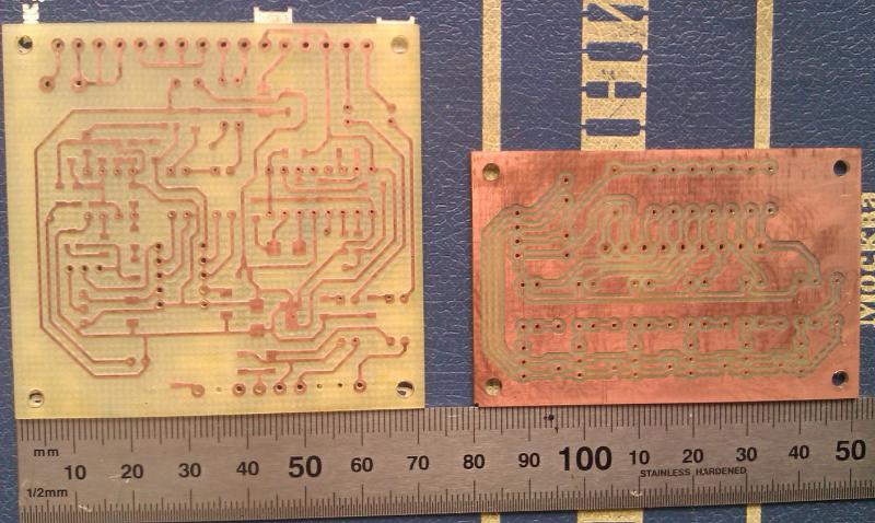 Первые печатные платы изготовленные на фрезерном станке с ЧПУ, контур обработан конусной фрезой 30"х0,5мм.