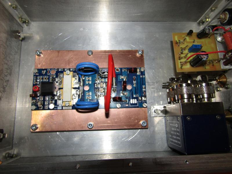 Совершенно верно, подал 5 Вт. Выгорел один затвор. Это было не страшно пока вход был сделан по китайски, как только сделал по правильному, этого стало с избытком. Вот и каюк пришел транзистору. По входу нужно ставить аттенюатор. Сейчас еще смещение хочу сделать по другому и можно в корпус засовывать.