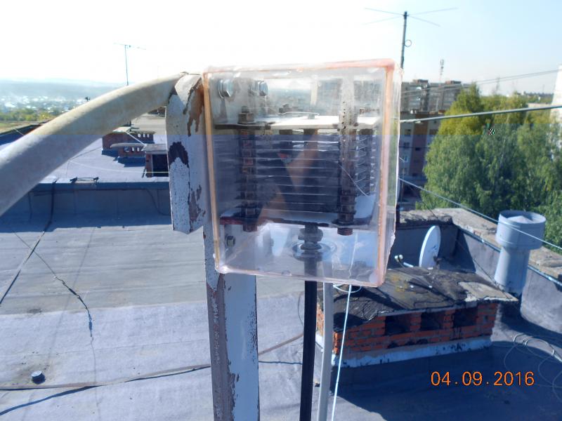 Антенна Magnetic Loop с установленным самодельным конденсатором *бабочка* в герметичном корпусе.