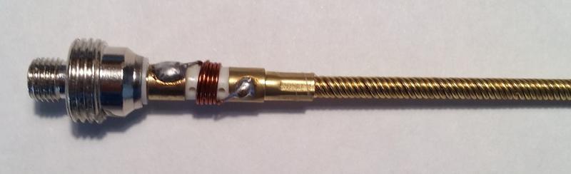 RN4NA писал(а):Разозлился, распилил основание антенны. Результат: сама антенна – 35 см стального витого тросика. Между тросиком и разъемом вставлена катушка из стального провода диаметром примерно 0,7 мм, длина катушки 12 мм, диаметр катушки 6 мм, число витков 6,5. Провод покрыт чем то желтым, но явно не золотом. Верхний конец катушки припаян к тросику, нижний тупо надет на вывод разъема. И все это залито эпоксидкой. Никаких согласующих конденсаторов нет, а то что одной катушкой из низкодобротного материала с большим затуханием можно согласовать сразу и 145 и 430 МГц – сильно сомневаюсь.