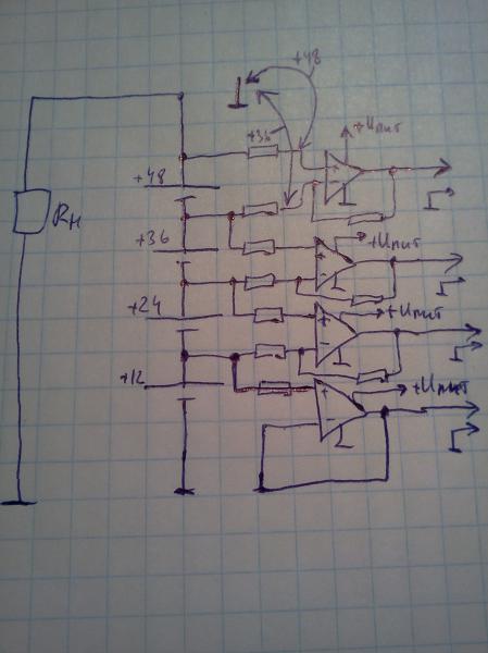 Но при этом у верхнего по схеме ОУ на положительном входе будет потенциал относительно общего провода все +48 Вольт, подозреваю что ОУ с таким рабочими напряжениями стоят порядочно. Или может я изобретаю велосипед и уже есть проверенные схемные решения? Выходное напряжение не обязательно должно быть равно напряжению конкретного аккума, потому как это напряжение далее будет сравниваться с каким-то опорным или подваться на АЦП микроконтроллера.