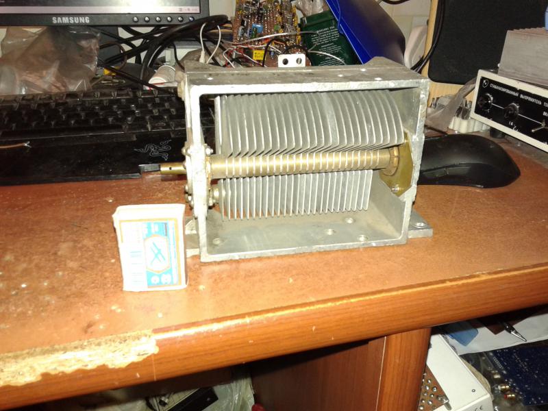 Продам конденсатор переменной емкости 27-1100 пФ,зазор м/у статорными и роторными пластинами примерно 1,5мм.Цена 2000 руб.