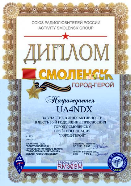 Есть дипломы- за час выполняются ! Как вот Смоленск : (кстати спасибо про AO150(x) -объяснили,только в июне) Сайтик Смоленского- прекрасно оформлен : http://rm30sm.ru/ 73!