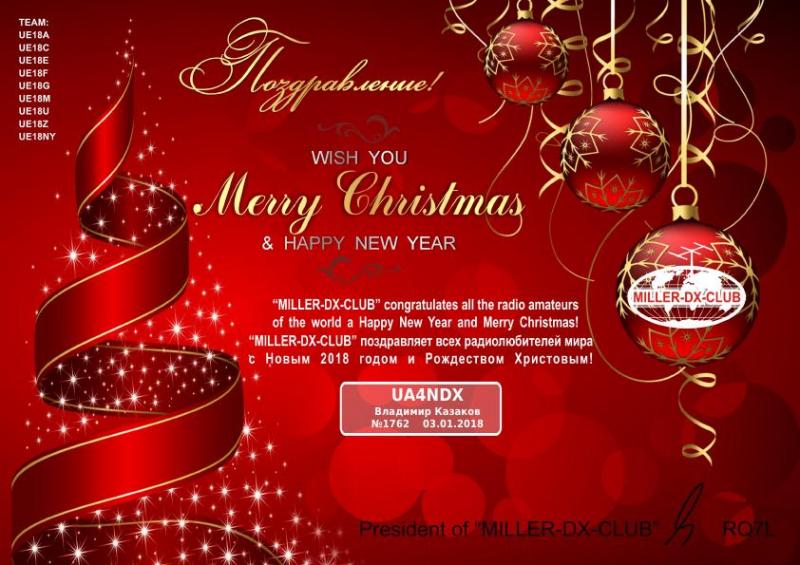 Диплом «Рождество» - 18 очков,QSO идут в зачет только за 6-7 января 2018г.