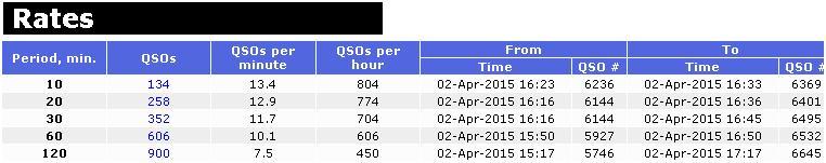 Лучшие периоды по времени по количеству QSO за 10 минут, 20 минут и т.д.