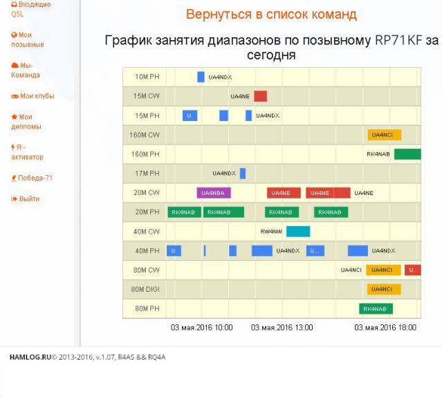 Обращаюсь с напоминанием к операторам мемориальной станции RP72KF что-бы не забывали перед началом работы на сервисе HAMLOG.RU в разделе "Мы-команда --- RP72KF --- Занятие диапазонов" выбирать соответствующий диапазон и моду "Занять на 1 2 3 4 часа".