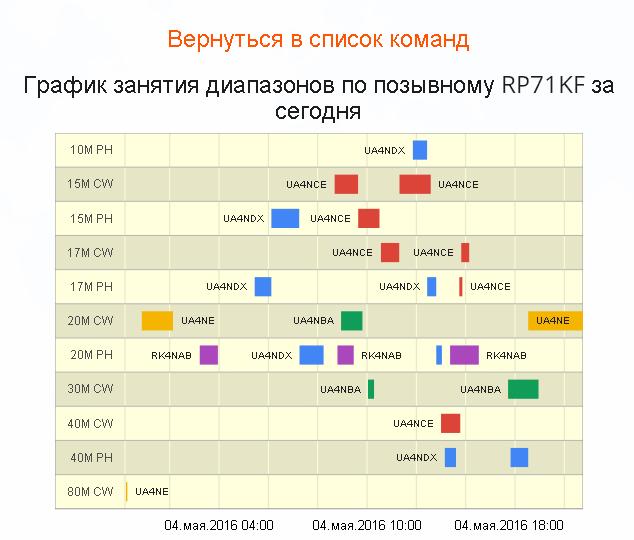 График занятия диапазонов по позывному RP71KF за сегодня по состоянию на 2100 МСК