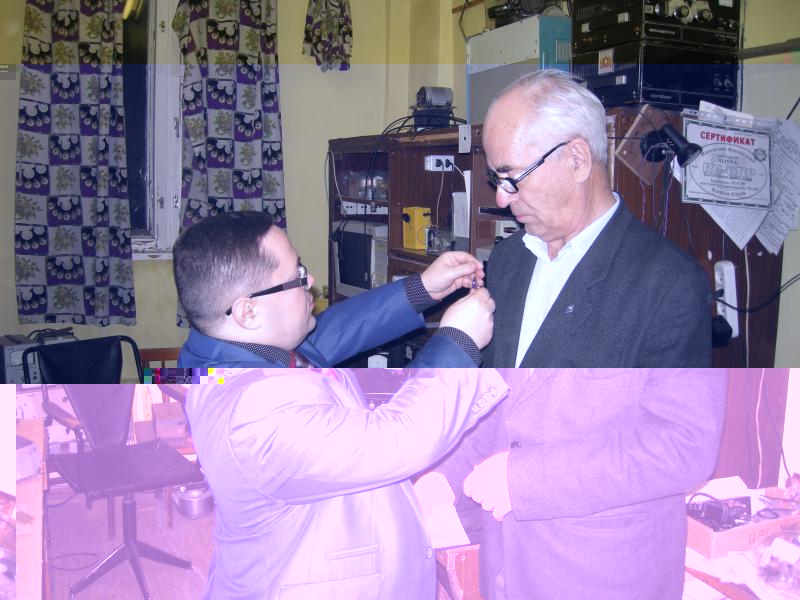 Виктор UA4NN только что послал несколько фоток с "мероприятия".... (В.А Суворову ,UA4NM -вручался знак "почётный член СРР " ) Ну,и желающие могли просто пообщаться с начальством :)
