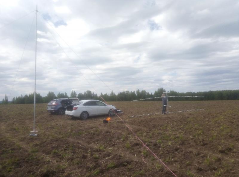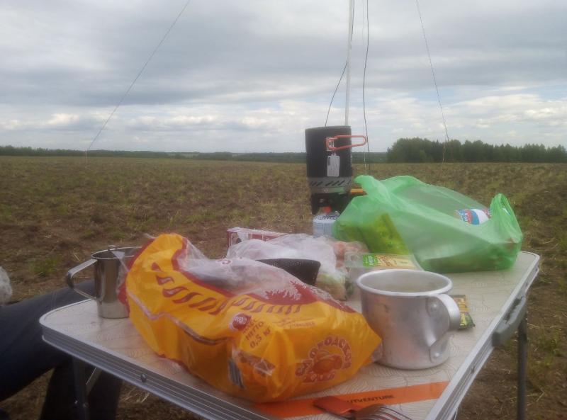 На поляну прибыли примерно в 11:30 - 12:00. В этот раз поле за несколько дней до нашего приезда было перепахано. Выбирать и искать другую поляну уже не было времени , поэтому было принято решение остановиться на ставшем для нас уже родным поле в квадрате LO58AB. После выбора наиболее высокого и ровного клочка земли приступили к постепенной сборке мачты, антенн и всего остального.