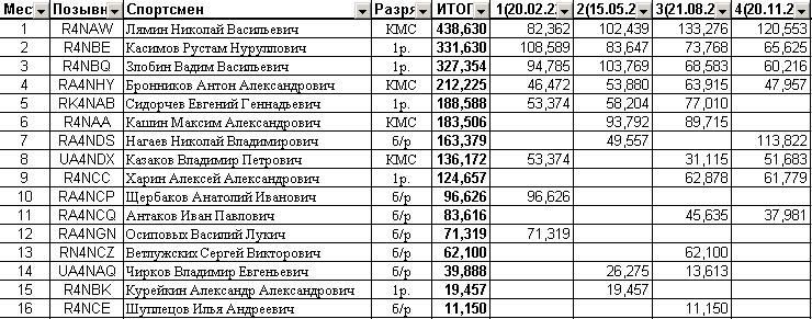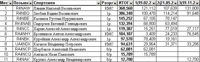 7.2. Окончательный результат получается суммированием очков за расстояния, корреспондентов, QTH.