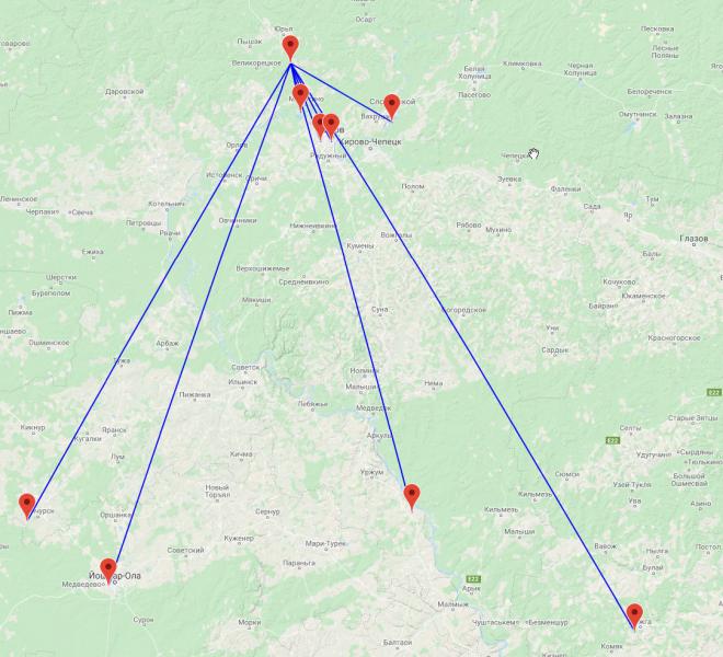 Надеялся на телеграф- но телеграфисты в "чате" и на "поиск" их не больно то возьмёшь...Хочу заметить,при плохом проходе,связи на 400км и далее -берутся в общем то через отражения от самолётов, 40-60 сек -и всё, жди следующего ...Благодарен хорошему терпению оператора R9CT (600 км) Взял его только с пятого раза ! (комплект номеров) Вот и всё. Даже Перми нет...Работа из города -совсем не хороша на УКВ, по любому критерию... Вышло только вот так :