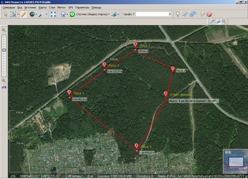 На карту вынесены метки расположения "лис" и точка "старт-финиш"