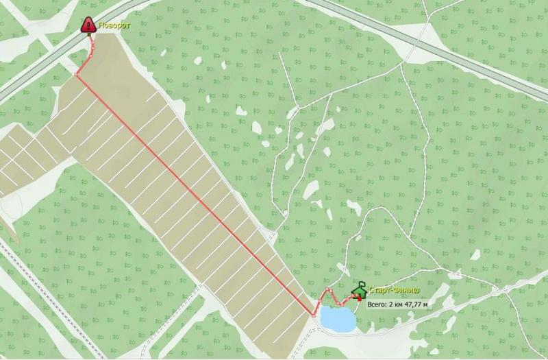 Справа от нас будет карьер "Красное". Проезжаем по лесной дороге еще приблизительно 300 метров и приезжаем к месту Старта-Финиша (точка на карте Старт-Финиш, координаты 58°40'43,37" с.ш. 49°42'01,08" в.д.)