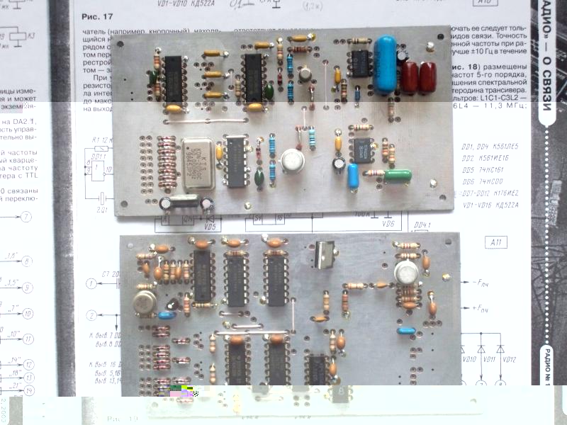 waleri! Отличные платы. Я хочу повторить ЦШ как в оригинале, причём сделать их две и два ГПД. Собираюсь выписать штук 100 кварцев на 8.867238 и сделать кв. фильтры + для приёма АМ. и МС, раньше в Алми брал, но сейчас там нет. В Чип и Дип набираю заявку. В том числе и Кв. генератор, и на 50, и на 60 мГц.Этот трансивер отдам, пусть работает товарищ. Он переоформляет позывной. Всё по новой буду делать. FLL, скорей всего, буду делать навесным монтажом. Стабильность буду проверять потом на РАП ТВ. У нас на работе имеется. 939 все на этот трансивер поставил, имеются 913, 610, 919 и много других, вот с ними и буду экспериментировать. Может тоже поделитесь результатом. Очень интересно. Где не искал, никакой, почему-то информации от любителей нет, по этому трансиверу. Так по этой схеме, кнопки-то не нужны, если поставлена 1533 или её аналог.