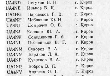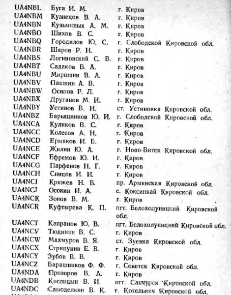 Может было уже? Список вятских КВ позывных из справочника ЦРК 1962 года: