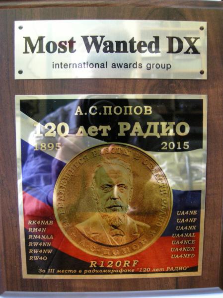 За нашу отличную работу спецпозывным R120RF пришла доска "120 лет Радио".